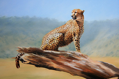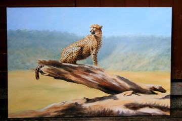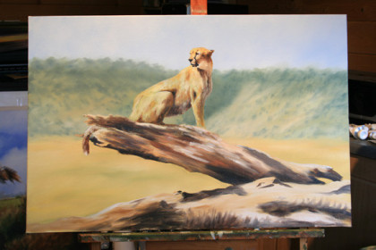 When this painting of a Cheetah is finished, I think I will call it (Vantage Point), A dead tree on the mara plains provides a good vantage point for a cheetah to use as a lookout.